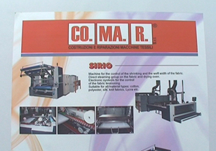 公司提供的設(shè)備主要有:白卡拉尼(Biancalani)公司的愛樂系列多功能柔軟整理機(jī);卡羅(ColorService)公司的自動染化料計(jì)量,化料,配送系統(tǒng)、實(shí)驗(yàn)室配化料系統(tǒng);科馬(Comar)公司的小型蒸汽定型機(jī)、拉幅機(jī);克來米(Clemipiega)公司的折景機(jī);Cubotex公司的圓筒式絲襪染色機(jī)、抽屜式絲襪染色機(jī);拉察帝(Lazzati)公司的特寬幅布料打卷、折疊、打包機(jī);克勞斯特(MarioCrosta)公司的起毛機(jī)、剪毛機(jī)、磨毛機(jī) 、刷毛機(jī)、起剪聯(lián)合機(jī);Misatex公司的亂皺機(jī);普吉(Pugi)公司的縫頭機(jī)、縫筒機(jī)、針織物連筒機(jī);通乃路(Tonello)公司的成衣染色機(jī) 、成衣水洗機(jī)、成衣整理設(shè)備?!?/p>