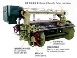 送徑: 半積極外側(cè)式機械送徑,備有三后梁經(jīng)紗漲力控制機構(gòu),經(jīng)軸盤片直徑φ550或φ400毫米。