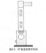 ·SF垂直型精開松機(圖6-5)??? 屬于柔和開松機,用于短和中等長度的天然和合成短纖維的開松,可用作后序機器的儲存單元,是棉梳理生產線的最好選擇。該機由一個配有最小量和最大量控制的光電管的喂料倉、反向驅動的2個開槽的喂料錫林和一個紋釘滾筒組成。該機標準工作寬度為1500-2500mm,紋釘滾筒直徑是440mm,生產能力達300,800kg/h。