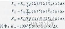 圖1分光光度曲線 實際測色中,分別測量原樣和測試樣,通過采集物體表面的若干光學參數(shù),如反射物體的光譜輻射亮度因數(shù)β(λ)、光譜反射比ρ(λ)和相對光譜靈敏度S(λ)等,求出被測物體表面顏色三刺激值(x、y、z),通過CIELAB色差公式,計算得到原樣和測試樣的色差值,再轉(zhuǎn)換成灰卡級數(shù)。 計算公式為:.jpg)