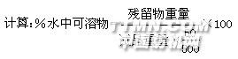 (一)色澤 色澤用肉眼觀察試品便能辨別。(二)水分 與淀粉分析法中水分的測定同。(三)灰分 與淀粉分析法中灰分的測定同。(四)未轉變的淀粉或雜質 配成5%的溶液,經劇烈震蕩后,靜置約12小時,移取上層澄清液(記下容量),放在蒸發皿中烘干,稱它重量,即可算出此品的可溶性物百分比。根據此品的含水量和可溶性物量,便可算出不溶性物的含量;如此項數值超過3%,表示此品的雜質太多,不能應用。 同時,將上述5%液體的沉淀物,經離心機濃縮后,沾取少許,放在顯微鏡下觀察,看是否有砂泥等硬粒,如硬粒太多,即使不溶性物含量在3%以下,也同樣不能使用。因糊精或印染膠應用時,雖要經過組織細密的布袋榨濾,但細小砂??赡艽┻^布孔進入調制的色漿中,其后嵌入花紋花筒中,則有損花筒表面及刮刀,而產生條花現象。操作方法: 稱取試品約25克,置于400毫升的燒杯中,加水200毫升,攪勻。用水洗入500毫升的量瓶中,經劇烈震蕩后,靜置約12小時。移取上層清液50毫升,置于已知重的蒸發皿中,放在水浴上蒸發至干,然后移置105℃烘箱中烘至重量不變;最后放在干燥器中冷卻后稱其重量。