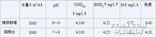 2、 常熟鴿球印染有限公司8000t/d印染廢水處理工程 常熟鴿球印染有限公司由六家印染企業(yè)組合而成,原位于常熟市區(qū)。隨城市規(guī)劃和生產(chǎn)發(fā)展需要,該公司整體搬遷至常熟市大義鎮(zhèn)工業(yè)開(kāi)發(fā)區(qū)。 該公司主要生產(chǎn)純棉和滌棉混紡織物,年產(chǎn)量約9000萬(wàn)米。生產(chǎn)過(guò)程中主要用分散染料和活性染料及有關(guān)助劑。廢水排放量近6000m3/d。搬遷后廢水處理工程屬于三同時(shí)項(xiàng)目。 受該公司委托,南京嘉慶科技實(shí)業(yè)有限公司為其設(shè)計(jì)污水處理方案。經(jīng)本工程處理后的水質(zhì)達(dá)到[GB4287—92]《紡織染整工業(yè)水污染物排放標(biāo)準(zhǔn)》的一級(jí)標(biāo)準(zhǔn),其中50%(3000m3/d)排放,另有50%(3000m3/d)回用于生產(chǎn)工藝、冷卻水補(bǔ)充水及綠化等。 (1) 設(shè)計(jì)規(guī)模 廢水正常排放量接近6000m3/d,考慮生產(chǎn)高峰期排水量,業(yè)主提出該廢水系統(tǒng)的最大處理能力為8000m3/d。 (2) 設(shè)計(jì)進(jìn)水水質(zhì) 根據(jù)常熟鴿球印染有限公司提供的有關(guān)水質(zhì)數(shù)據(jù)見(jiàn)表3。 表3 設(shè)計(jì)進(jìn)水水質(zhì)
