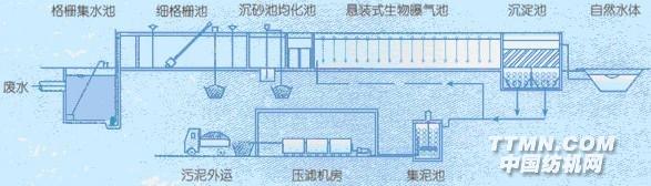 一、系統簡介目前常規污水處理設施土建投資巨大,一般占到總工程的2/3以上,其中鋼筋混凝土池的投資占到土建投資的絕大部分。針對這種情況,興港公司開發了懸裝式水處理系統。懸裝式水處理系統的核心技術是活性厭氧濾池、懸裝式曝氣系統、懸裝式接觸氧化系統以及吸泥船。懸裝式水處理系統的水解池、厭氧池、好氧池、沉淀池均按土池建造,因此大大降低了成本,其投資僅為鋼筋混凝土池的1/5~1/10。土池四周用卵石作護坡,池底鋪廉價、耐用的防滲工土布,因此完全排除了滲透的隱患。