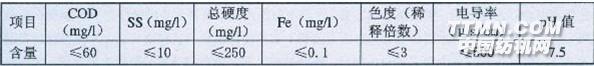 7、生物炭作為回用水,除考慮色度、COD的影響外,還要考慮Fe、Mn、硬度、電導率等因素的影響,在本工藝中增加了生物炭吸附裝置。最終出水見表5。表5