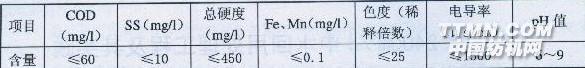 2、出水水質根據生產技術要求,回用水暫訂如下標準(表2)