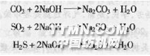 利用煙道氣中和堿性印染廢水是一種經(jīng)濟(jì)有效的中和方法。煙道氣中含有高達(dá)24%的CO2,有時還含有少量SO2及H2S等酸性氣體,這些氣體和印染廢水中的堿性物質(zhì)的中和作用如下:.png)