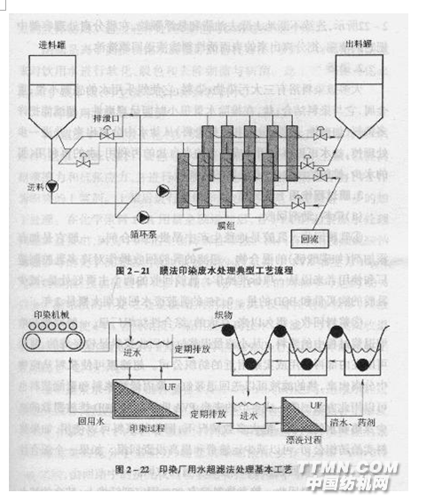 (2)漂洗:練漂產(chǎn)生大量的BOD、油和油脂,棉織品中的重金屬也產(chǎn)生負(fù)面影響。一般來(lái)說(shuō),這些懸浮液較為穩(wěn)定,難于采用傳統(tǒng)方法處理。超濾可以把懸浮液濃縮至含油30%一50%,這樣能經(jīng)濟(jì)地把它去除。在這些濃縮物中,油包水型的懸浮液可以燃燒,可以用作燃料。其中的重金屬可減少它們的溶解度,通常情況下小于1ppm。 練漂廢液處理用陶瓷或中空纖維膜最好。最好的連續(xù)處理如圖2—