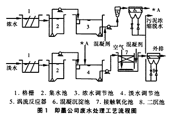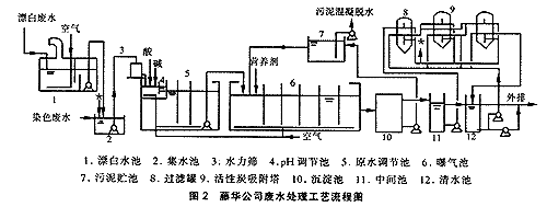 本文通過兩項較為成功的工程實例,闡明如何根據(jù)不同的處理條件和處理要求選擇合適的工藝,以保證處理設(shè)施具備相應(yīng)的科學(xué)性和合理性。 染色廢水處理的單元工藝可分為生化法和物化法兩類。生化法一直占主導(dǎo)地位,然而近年來開發(fā)的許多新型染料由穩(wěn)定的環(huán)狀有機物組成,可生化性差,所以生化方法一般脫色效果較差,比不上物化法。但在水質(zhì)條件允許的情況下,應(yīng)盡量采用生化法加物化脫色的工藝,以保證出水水質(zhì)。 在國內(nèi),染色廢水處理的生化法主要有表面加速曝氣活性污泥法和生物接觸氧化法兩種。由于資金不充裕,發(fā)達(dá)國家普遍采用的延時曝氣活性污泥法在國內(nèi)應(yīng)用很少。 鑒于染色廢水的色度高、許多染料的可生化性較差,因此用物化方