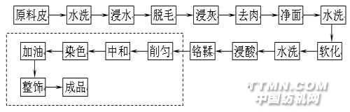 一、廢水產(chǎn)生過(guò)程 皮革加工是以動(dòng)物皮為原料,經(jīng)化學(xué)處理和機(jī)械加工而完成的,其生產(chǎn)基本工藝如圖所示: