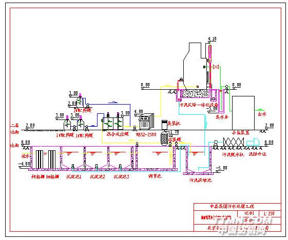 3.工程實(shí)例: 3.1 江門(mén)市蓬江皮革廠 蓬江皮革廠座落在江門(mén)市區(qū)天沙河岸,是一家老字號(hào)(外資)企業(yè),主要產(chǎn)品結(jié)構(gòu),以牛皮制革為主也有部分豬皮與羊皮,又以鹽濕生皮為主,亦有些蘭皮深加工,視市場(chǎng)與訂單走勢(shì)而定。 早日已建成1200m3/d 能力的集中治理設(shè)施,都因?yàn)樯ぶ聘锷a(chǎn)過(guò)程,排污廢水含鹽份高,還有重金屬鉻與硫化物等毒性,而且毛發(fā)、碎皮肉粒等,SS雜物多,在洗皮時(shí),還用了大量的Cao----Ca(OH)2,故此渣量大。雖然幾經(jīng)改造,但至今仍未達(dá)標(biāo)排放,其中生化凈水的出口CODcr>300mg/l。 原廢水水質(zhì)