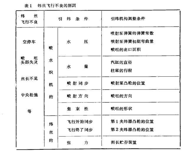 噴水織機是依靠水噴射使緯絲飛行的。這個時候必須賦予緯絲以正確同步,且充分的飛行力,然而,現在在噴水織機的停臺原因中,緯絲飛行不良卻占了6O以上。