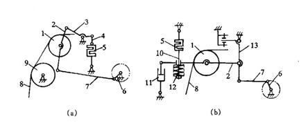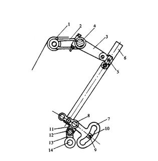 7-連桿? 8-經紗? 9-固定后梁? 10-彈簧桿? 11-阻尼器? 12-彈簧? 13-雙臂桿