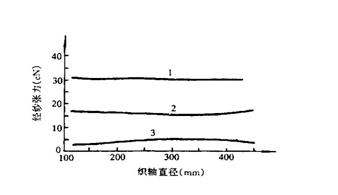 織軸送出經紗,其直徑不斷減小,在張力調節裝置尚未作出響應之前,經