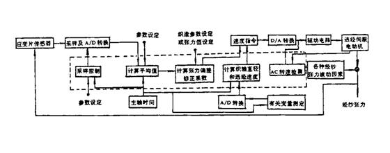 后梁受力檢測方式的經紗張力信號處理與控制系統中采用了微電腦。該方式應用在不同電子式送經機構中,信號處理和控制的方法各有特點,所使用的織軸驅動伺服電動機也有交流和直流之分,因此,經紗張力信號的處理