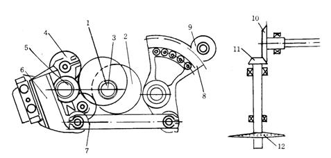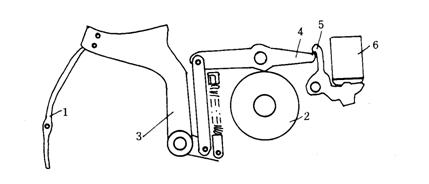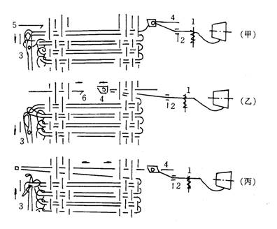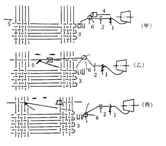 位置附近的運動較接緯劍的四連桿更緩慢的緣故,它有利于送緯劍能在較短的距離內正確夾