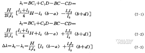 式中各參數的含意可從圖7-1中直接得到。當后梁位于胸梁之上時d值取“+”,反之取“-”。Δλ代表下層經紗變形大于上層經紗變形的部分,通常是一個正值。