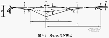 經紗處于綜平位置時,經紗自織口到后梁同有關機件相接觸的各點聯接線稱為經紗位置線,如圖7-1中的連線BCDE。如果D、E兩點在BC直線的延長線上,則經紗位置線將是一根直線,稱為經直線。經直線只是經紗位置線的一個特例。折線ABCDE則稱之為織機上機線。在一般情況下,梭口形狀在梭口高度方向上并不對稱。