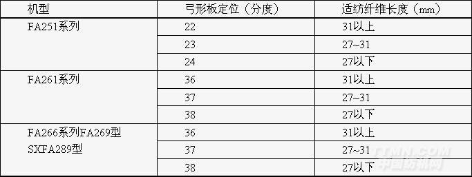 國(guó)產(chǎn)精梳機(jī)弓形板定位與適紡纖維的長(zhǎng)度的對(duì)應(yīng)關(guān)系如下