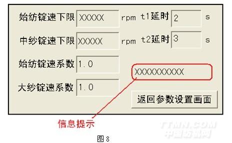 ②中紗錠速下限:設置變速控制(恒張力)模式下中紗階段的錠速下限值,即系統(tǒng)自動計算的中紗階段理論錠速值若低于此值將不會被執(zhí)行,此值為中紗階段的最低錠速。
