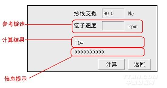 2)如果試算時有“試算失敗”的提示,請檢查鋼絲圈重量與紡紗支數(shù)是否匹配,如果鋼絲圈重量偏輕則易造成試算失敗,此時應適當放大界面輸入的鋼絲圈重量。