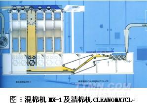 5、第三個機器是混棉機MX-1及清棉機CLEANOMATCL-C3(三剌輥系統)CLEANOMATCL-C4(四剌輥系統)聯合機組(見圖5)