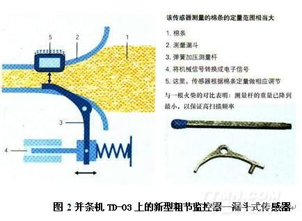 圖1是特呂茨勒公司在2007幕尼黑ITMA展出的新型并條機TD-O3上的新型粗節監控器--漏斗式傳感器
