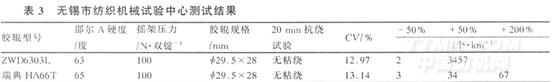 品種:CJ55/T45 12.9 tex;機型:FA506;溫度:30℃;相對濕度58%。具體結果見表3。