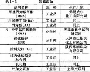全部單體預乳化法:將全部的單體及乳化劑、1/2引發(fā)劑、水,一起加入到四口燒瓶中,乳化1b,速度保持在80Or/min左右。將預乳化液的2/3倒出,在剩余的預乳化液中加入1/4引發(fā)棄Ij,降低攪拌速度200~25 r/min。溫度升到75~ 80開始泛藍,三燒瓶內(nèi)的溫度開始急劇上升(這時要采用適當而有效的方法降溫),當溫度下降到穩(wěn)定程度時,開始滴加剩余的2/3乳化液,大約OY~mm滴加完成,加入1/4的引發(fā)劑,保溫1h。