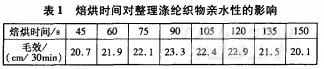 2.3.3焙烘時間對整理滌綸織物親水性的影響