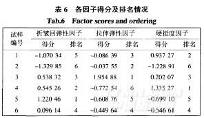 本文采用回歸分析方法,對(duì)實(shí)驗(yàn)試樣的硬挺度因子、拉伸彈性因子和折皺回彈性因子得分進(jìn)行排名,結(jié)果如表6所示,期望值設(shè)置為0,方差設(shè)置為1.
