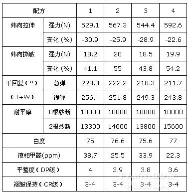 我公司的低甲醛樹脂NLD + 無甲醛樹脂WSD同浴,用于紗卡等織物的免燙整理,織物上游離甲醛含量低、強力好、褲子的褶皺保持好、DP 級高,免燙整理后織物的黃變低。滿足高檔褲子面料的要求。