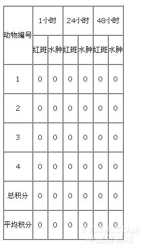 按“一次皮膚涂抹實驗”方法,對四只家兔進行了皮膚刺激試驗,結果如下: