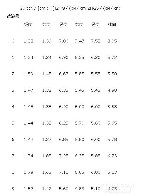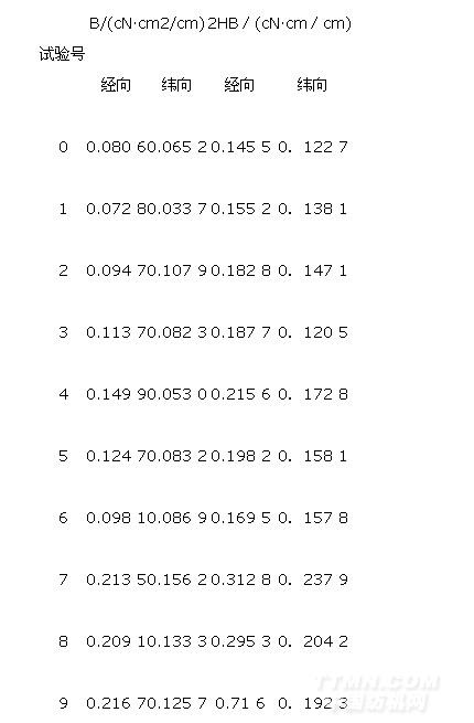 B表示織物的身骨(剛柔性),B值越小,織物越柔軟;2HB表示織物的活絡觶跳性),2HB值越小,織物彎曲變形后的回復能力越好。