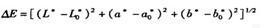 (1)式中,分別為白織物的顏色特征值。