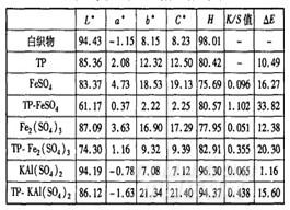 絕大多數天然染料在染色時,都要借助媒染劑來豐富其色相,增加色牢度。本試驗中以硫酸亞鐵、硫酸鐵和硫酸鋁鉀為媒染劑,用后媒法處理棉織物,得到棉織物的顏色特征值和色差值見表2。