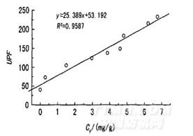 圖5 棉織物上茶多酚的吸附量與染色織物UPF指數的關系