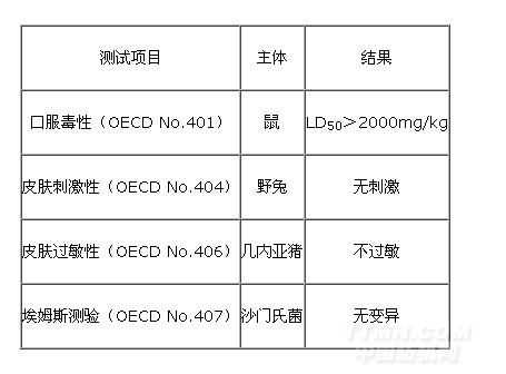 由表3的毒理數據表明:商品是無刺激,不會導致皮膚過敏,可作紡織品的表面改性整理劑用。