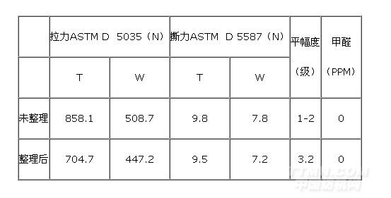 無(wú)醛樹脂WSD系統(tǒng),樹脂用量150~160g/L,焙烘溫度160-165度,時(shí)間40-50秒,可達(dá)到整理后平整度3級(jí)以上,降強(qiáng)在15%左右,且布面不含甲醛的良好效果。本系統(tǒng)柔軟劑和纖維保護(hù)劑的加入不僅可以改善織物的強(qiáng)力,而且賦予織物極佳的懸垂性,柔軟豐滿的手感,進(jìn)一步提高面料的檔次。使用這套系統(tǒng)整理的面料符合當(dāng)前綠色環(huán)保的理念及流行的趨勢(shì),有著廣闊的市場(chǎng)前景。