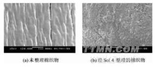 圖5 Sol 4整理前后棉織物的掃描電子顯微鏡圖片