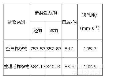 從表2可以看出,整理后棉織物的經(jīng)向強(qiáng)力略有下降,但降幅不到10%,緯向強(qiáng)力略微下降。整理前后棉織物的白度、透氣性基本沒變。由此可見,上述整理不會影響棉織物的服用性能。