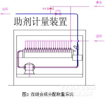 為保證計量的準確性和耐用性,采用耐酸堿、耐腐蝕的高揚程動力泵作為遠程輸送裝置,染料或助劑計量采用高精度流量計和合成分配器以變頻方式控制計量。結構如圖2所示。