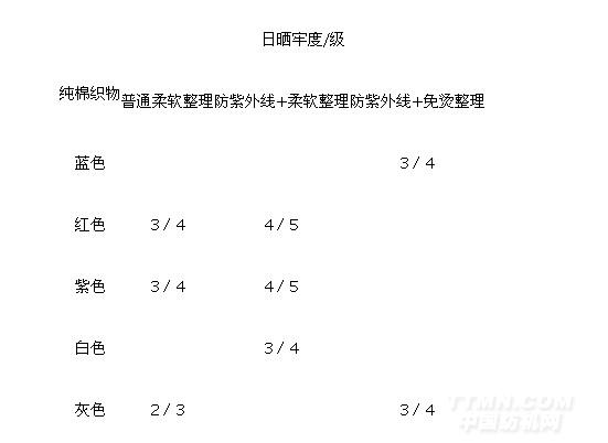 表2 不同整理方式的日曬牢度對比