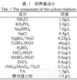微生物生長繁殖所需培養基應包含其生長所需的微量元素和基本的碳源,本實驗中所用培養基為選擇性培養基,依靠對苯二甲酸(TA)提供碳源,并加入酵母浸出粉作為有機氮源,用于馴化微生物,并獲得較大量的菌體,使其具有更好的催化改性能力。具體成分如表1所示。
