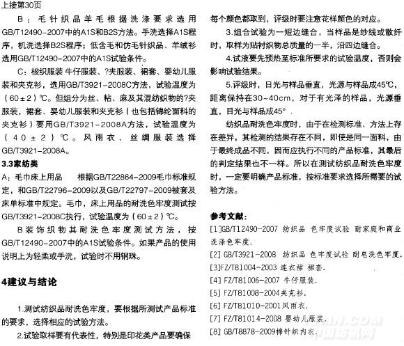 摘要:針對耐洗色牢度測試標準GB/T3921—2008-'~GB/T12490-2007進行了比較和分析,指出了不同類型的貼襯會影響測試結果,并且提出了測試過程中應注意的問題。介紹了測試各種紡織品耐洗色牢度的檢測方法和貼襯的選擇技巧。