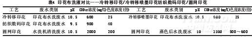 表3中,無論棉布印花,還是燈芯絨印花,百米耗水皆為圓網印花高于冷轉移印花,由于合格品率圓網印花要差4%,因此,最終的百米印花取水更高;圓網印花過程,“網印”與“皂洗烘”是耗水差額焦點;冷轉移印花三種介質載體印刷,圓網冷轉移耗水略高。