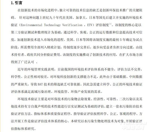 水污染防治生物處理技術驗證評估指標體系研究