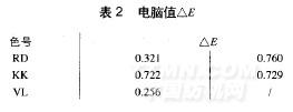 安排小樣生產(chǎn)每班打l條,連續(xù)3班,表現(xiàn)出較好的重復(fù)性,電腦值見表2。另從大貨生產(chǎn)所織5層襪樣看,即便是敏感色VL色所表現(xiàn)出的內(nèi)外差比較好。