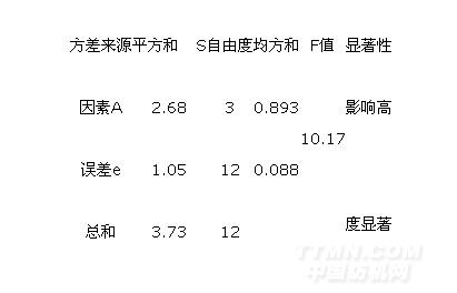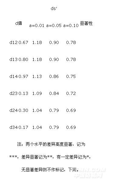 表4 對表1中各水平的Scheftb法兩兩比較結(jié)果