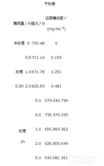 對應(yīng)表1和表2工藝處理的織物進行了頂破強力和處理殘液的還原糖含量測試,結(jié)果見表7。