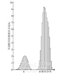A 區域.未包覆的乳液粒徑分布范圍(0.07~0.30 μm);